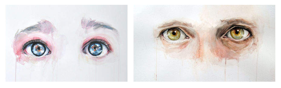 O poema acima é meu; a imagem de fundo é de Jone Bengoa, artista espanhol cuja obra, composta por aquarelas, se caracteriza por expressar imensa variedade de emoções a partir de pares de olhos, como se pode verificar nas imagens abaixo:
