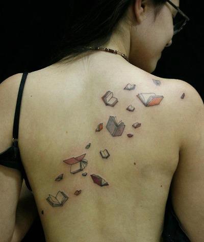 Amantes de livros – quando dão para também amar tatuagens – gostam de expressar seu amor pelos livros em belas tattoos que vão desde frases e desenhos pequeninos, que representam livros ou fazem alusão à magia da literatura, até tattoos mais elaboradas e arrojadas, que comprometem grande parte do corpo do leitor/colecionador de livros, na clara intenção de tornar também obvio aquilo que o distingue entre os comuns mortais – o fato de ser um apaixonado por livros: